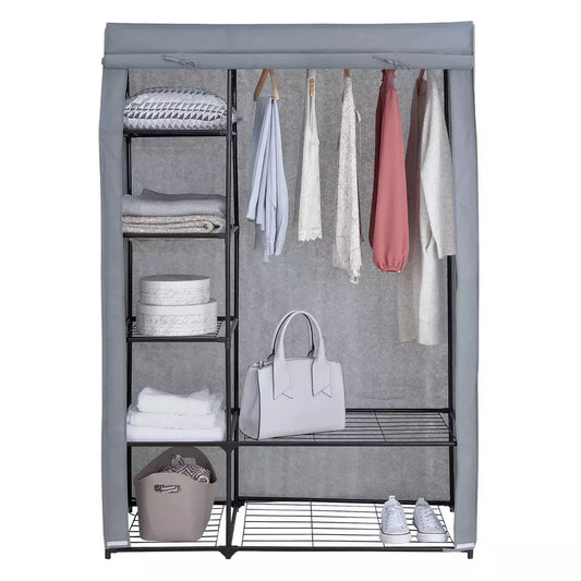 Covered Double Wardrobe with Storage - Grey
